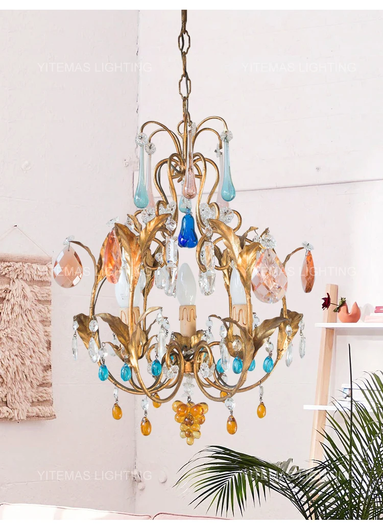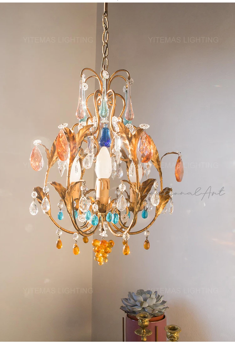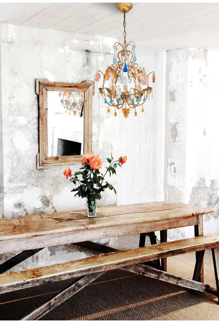 Colorful Crystal Chandelier Bohemia Lights Pink/Blue/Oganic Crystal Chandeliers In Kitchen Dining Room Hallway Entryway Bedroom